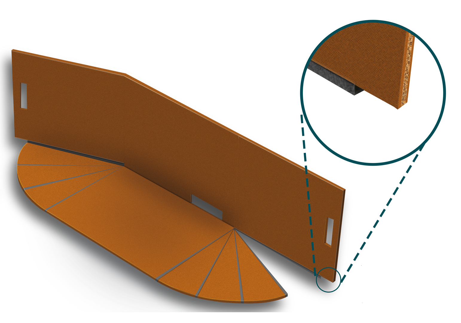 - El cuerpo del cubiculo es de láminas de corcho y caucho de corcho de 8mm, ya que cuenta con propiedades útiles para el producto, tales como aislamiento térmico, resistencia al movimiento, duradero, rígido y ligero.